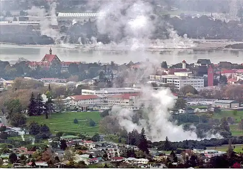 Rotorua is built over a geothermal hot spot. There are numerous natural vents, hot pools and other geothermal features in and around the city. Many of these are in parks and reserves. Natural eruptions of steam, hot water and mud occasionally occur in new locations. Many places have their own private geothermal bores for heating and water for bathing although the private use of naturally occurring geothermal water and steam is controlled.