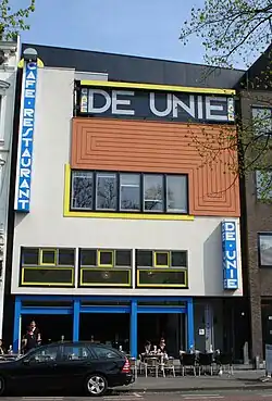 - π Charly's Lunchroom (CafΓ© De Unie), Mauritsweg 34-35 (Eendrachtsplein A B C 4 7 ). This restaurant/cafΓ©/art society is a Rotterdam institute. Housed in a magnificent building reminiscent to a Mondriaan painting, being built in the De Stijl-style, it also hosts all kinds of cultural venues and parties. A good place to have coffee too.