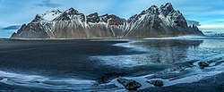 - Attempt a detour just before the tunnel from Höfn to get to Stokkness, where you get to see Vestrahorn, perhaps the most photographed mountain of Iceland. If lucky or skilled with photography techniques, the mountain is reflected onto the water. Unfortunately, it is one of the few places where you have to pay to see nature (kr 800 per person to be exact). Perhaps as a consolation, you can also check out its very own Cafe and a Viking village film set that never took off. To the right of Vestrahorn is Bunnhorn, also called the Batman Mountain because of its shape with three peaks that look like Batman’s logo.