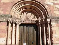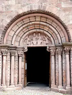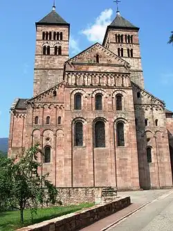 The Route Romane d'Alsace is a tourist itinerary designed by the Association Voix et Route Romane to link both the well-known and the more secret examples of Romanesque architecture of Alsace, in an itinerary of 19 stages, linking churches, abbeys and fortresses, that range from the first Romanesque structures of Alsace at the abbey church of Saint Trophime, Eschau, into the 13th century, and the beginning of Gothic architecture in Alsace.