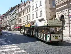 The Royal Way starts at the Republic Square, which is very well connected to other parts of the city. The most reliable way to get there is by subway, line B (yellow), station "Náměstí republiky". Pay attention when leaving the station. You should go through the "Náměstí republiky" exit, not "Masarykovo nádraží", which leads to a railway station nearby. Tram lines 5, 8, 14 (and night lines 51 and 54) and bus lines 133 (and night lines 505, 509 and 513) also stop at the Republic Square. If you have just arrived in Prague by train at Masarykovo nádraží, you can easily reach Republic Square on foot.