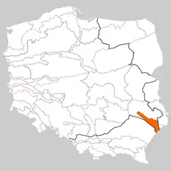Roztocze is a range of hills in east-central Poland and western Ukraine. In Ukraine it is known as Roztochia (Розточчя) and reaches as far as Lviv. The range is approximately 180 km long and 14 km wide. In Poland Roztocze lies in the Lubelskie and Podkarpackie voivodships. The range is also the home of the Roztocze National Park.