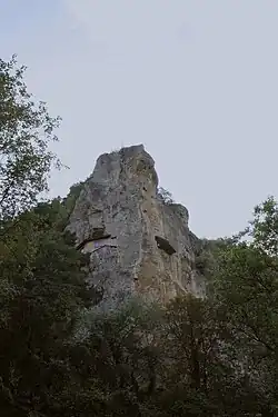 - 🌍 Basarbovo Monastery (St. Dimitar Basarbovski Monastery) (the road leading to the monastery branches from Road 501 in the village, just north of the bridge where 501 crosses the river). A functioning Eastern Orthodox monastery named after a local saint, Dimitar of Basarbovo. Probably the only "rock-hewn"/cliff-side/cave monastery that remains in operation in Bulgaria, although nowadays the monks' dormitory is at the base on the cliffs, and the cells carved high up in the cliff face are used as chapels and tombs.