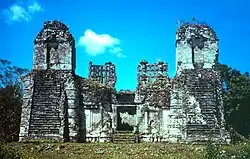 - Towers topped by false temples, emulating Mayan cities from the Peten region (especially Tikal), the towers serve no function and neither do the temples, they are meant to impress from a distance