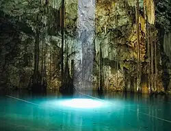 - 🌍 Zací. Located a few hundred meters from the central plaza in Valladolid, this sinkhole is traversed by a walking path that passes under a curtain of stalactites.