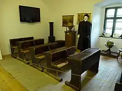 - 🌍 Scientific Collections of Sárospatak Reformed College (Sárospataki Református Kollégium Tudományos Gyűjteményei), Rákóczi út 1, ☏ +36 47 311-057, reftud@iif.hu. Apr–Oct: M–Sa 09:00–17:00, Su 09:00–13:00; Nov–Mar: M–Th 09:00–16:00, F 09:00–14:00. The Reformation began spreading into Hungary from this area. The first Protestant college, one of the most important colleges of Hungary at the time, was founded in Sárospatak in 1531. In 1650 Zsuzsanna Lorántffy, widow of George I Rákóczi prince of Transylvania invited the famous Czech educator Jan Comenius to Sárospatak. Comenius lived there until 1654, as a professor of the college, and he wrote some of his most important works there. Adult: 600 Ft; senior, student: 400 Ft.