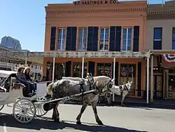 Once the original, thriving riverfront pioneer town, Old Sacramento is now primarily a living historic district and tourist destination. The boardwalk style sidewalks and horse-drawn stagecoaches give this small section of town a unique Western flavor. Old Sacramento contains several museums, restaurants, and the usual assortment of souvenir shops and ice cream parlors, all within walking distance of each other. Attractions in the Old Town area also include the Delta King Riverboat, a working hotel with restaurant. The California State Railroad Museum's Sacramento Southern Railroad is a private line extension providing riverside rides on a steam locomotive that departs from the Central Pacific Railroad Freight Depot, carriage rides as well as annual city event and functions. Best of all, it's a five-minute walk from the Amtrak station. It's best visited in the morning and early evenings, especially during the hot summers. Parking can be scarce, so be sure to utilize the reasonably priced parking structures in the K Street Mall. There's a nice, short, safe walkway between K Street Mall and Old Sacramento.