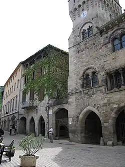 - The Caserne des Anglais (English Barracks) house, rue Guilhem-Peyré, was a base for English troops from 1352 to 1354, and eventually became a royal barracks. After the Revolution, it was converted into a town house. The building has two stone levels topped by a third of half-timbered brick. The street facade is pierced by two entrances; the pointed arch on the left dates from the 13th or 14th century, and the simple moulded arch to the right features a 17th-century wooden door. Three mullioned windows illuminate the first floor (end 15th - early 16th century). Wooden galleries crown the top floor.