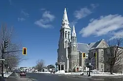 - 🌍 Cathedral of Saint-Jérôme, 355 Place du Cure-Labelle. M-F 13:00-16:30, M-Sa 08:30-12:00. It was built in 1897 in neo-classical style. It is 24.6 m high, 76.9 m long and 30.7 m wide. The large atrium is below the Casavant organ. Fence pink fence is lined with windows, made in France. Delphis-Adolphe Beaulieu created the grouped windows. In 1908, he added a transversal way to church. It includes a small museum.