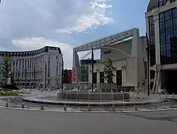 In 1975, the new station of Saint-Quentin-en-Yvelines was opened and development started to become more focused on the Eastern communes of Montigny-le-Bretonneux and Guyancourt, with a brand new 'town centre' to be built in Montigny-le-Bretonneux near the station. Contrary to the earlier developments in the Western communes focussed on large modernist housing estates (grands ensembles), the design of the Eastern part of the city would more closely mimic traditionalist styles of town planning, with the new town centre in particular consisting of a large amount of neo-traditionalist postmodern architecture that would be built over the course of the late 1980s and 90s, the centrepiece being the Place George Pompidou. The last major quarters of the new town were constructed in the mid-1990s before the new town project was declared 'complete' in 2004, although of course construction on a smaller scale continues to this day.