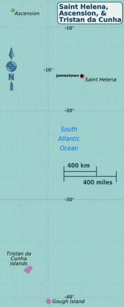 Saint Helena, Ascension and Tristan da Cunha is a British overseas territory consisting of the islands of Saint Helena and Ascension, together with the Tristan da Cunha islands group. These are among the world's most isolated islands and separated from each other by many hundreds of miles.