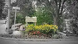 View of the floral arrangement at the start of the Promenade Laurent Naud along rue Lacordaire and Lac Croche in 2021