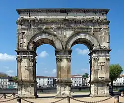 - 🌍 Arc de Germanicus. A triumphal arch built in 18 or 19 AD by Caius Julius Rufus, to celebrate emperor Tiberius, his son Drusus, and his nephew and adoptive son Germanicus. In Roman times it marked the eastern entrance to the city and was placed in the front of the bridge across Charente. When the quai was modernized in 1843-51, the arch was disassembled and rebuilt 15 m away at its current place. Some Roman inscriptions are still visible on the arch.
