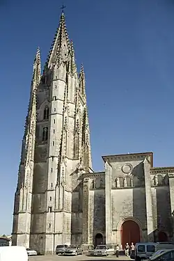 - 🌍 Église Saint-Pallais. Right next to the Abbaye aux Dames, of which it is an outbuilding, and for a long time the only parish church on the right bank. It was first built in the 12th century to replace Bishop Palladius' funeral basilica, and later modified into Gothic style. This led to some interesting details; columns becoming unused, the Romanesque apse being replaced by a flat bay in "flamboyant" Gothic style, and the bell tower being shortened and covered by an atypical slate roof. There used to be a small cemetery below what's now a public square next to the church. Entrée libre.