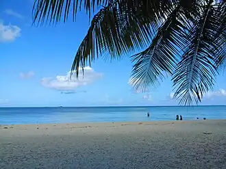 Saipan is 23 km (14 mi) long and 8 km (5 mi) wide. The best beaches and most populated areas are on the western and southern coasts, with the north and east being rugged and mountainous.