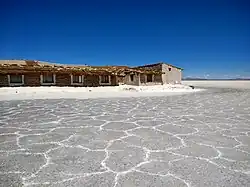 Very little rain happens in the area, but yearly flooding occurs, mostly in January. At that time the whole area changes to a world's highest altitude mirror. After the water evaporates, bee-hive-like polygons cover the area.