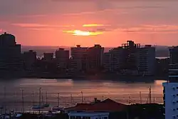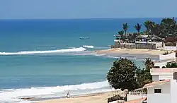 Punta Carnero is a beach in Salinas County, a 10 minute drive from Salinas. Its name, "Ram Point" in English, stems from the rocky headland at the southeast end of the beach. The beach extends for approximately 2.6 km (1.6 mi) and is relatively wide, with white to gray sand, medium waves, and a prevalent inland breeze. Punta Carnero has warm water temperatures, averaging 24 degrees Celsius (75 degrees Fahrenheit). It is one of the most popular holiday destinations on the Ecuadorian coast because of the fine beaches and steady weather all year round. Punta Carnero has great appeal. A wide swath of sand topped by low vegetation, spectacular waves, beautiful sunsets, a wonderful breeze. Punta Carnero also has great potential.