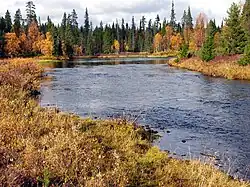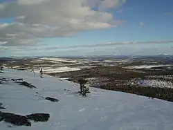 - 🌍 Oulanka National Park: Through the national park along the Karhunkierros trail, from Hautajärvi village (on road 950 towards Kuusamo) to Ruka. See the Oulanka article. The whole trail is 80 km (3–7 days) long but shorter variants are possible. There are about 5000 hikers on Karhunkierros every year.