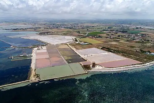 The Salt Pans of Trapani and Paceco (Saline di Trapani e Paceco) form a coastal nature reserve in western Sicily, known for traditional salt harvesting, flamingos, and historic windmills.