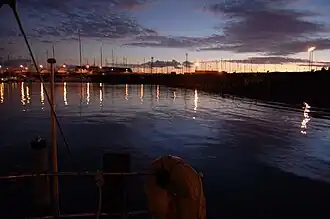 Clyde Marina east side of the ferry harbour has facilities for private boats, with mooring, dry berthing, cleaning, marine diesel and marine fuel. On approach, beware of Horse Isle one mile out: it has a day-mark but no light, and there have been several wreckings.