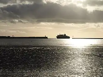 Ferries also sail from Troon to Arran in winter 2024 / 25, and those scheduled for Ardrossan may divert to Troon in bad weather, when the usual ferry berth is exposed. Until 2024 there was a back-up here, the "Irish berth", but this has become worn out and unsuitable for use. So check ahead if bad weather is expected.