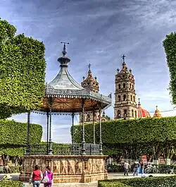 - 🌍 Jardin de Salvatierra (Zocalo), Francisco Madero 413, Centro. Beautifully landscaped main town square with towering boxwood hedges, brick walking paths, frequent benches, fountains, statues, and a central bandstand. The town's main church and the city hall (Presidencia Municipal) are here as well as many places to buy fresh ice cream (nieves).