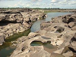 Sam Pan Bok (Thai: สามพันโบก) is known as the "Grand Canyon of Thailand" and is the biggest rock reef in the Mekong River. Sam Phan Bok translates as '3,000 shallow lakes'. Sam Pan Bok is in northeastern Thailand (Isaan), on the bank of the Mekong. Administratively, it is in Baan Phong Pao, Lao Ngam Sub-district, Pho Sai District, Ubon Ratchathani Province. The rock holes are caused by rushing water.