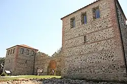 - 🌍 Tsari Mali Grad (Цари Мали Град) (on the hill south of the village; follow the brown road signs), carimaligrad@yahoo.com. Nov 1st - Apr 12th: W-Fr 9:00-16:30, Sa-Su: 9:00-17:30 (closed M-Tu); Apr 13th - Oct 31st: same, but closes 1 h later. The ruins of a late-Roman/Byzantine fortress (built in the 360s, razed in the 570s), with wonderful views of the surrounding mountains. The site was "discovered" by treasure seekers in the 2000s, emergency archaeological excavations started in 2007, afterwards it was partially reconstructed as a tourist site in 2012-2013. The towers that flank the gate have been restored to their full height, as well as the Church of the Ascension (originally built in the 15th century on top of the ruins). There's an archaeological exhibition with finds from the fortress, a playground with a rope bridge, etc. West of the parking lot, there's also a small ethnographic museum about the village of Belchin itself and 19th century village life. A small "funicular" leads from the parking lot to the fortress itself (as of early 2024, it's out of order). Alternatively, there are two gravel paths, the steeper one starts by the St. Petka Church west of the parking lot, the other one starts on the east side. Fortress and ethnographic museum: adults 10 лв, students (6+) and pensioners: 7 лв; funicular ticket: adults 5 лв, students and pensioners: 3 лв; parking: free.