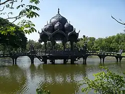 - 🌍 Ancient City (เมืองโบราณ), 296/1 Sukhumvit Rd (from Bangkok, take the BTS to the final stop at Kheha; then a taxi for 60 B or the no. 36 pickup songthaew.), ☏ +66 2 323-4094. 09:00-18:00 daily. Ancient City, also known as Ancient Siam, has scaled replicas of buildings from all over Thailand and is interesting to cycle around. Bicycles for rent for 150 B per day. Golf carts and e-bikes are charged by the hour. Adults 700 THB, children 350 THB (much cheaper if booked online via Klook or similar).