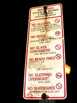 Alcohol is banned on all public beaches and coastal parks in the city of San Diego. Violators can be given up to a $250 fine, with repeat offenders fined up to $1,000 and six months in jail. The ban applies also to any sidewalk or street in the city of San Diego.