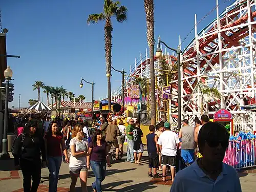 - 🌍 Belmont Park, 3146 Mission Blvd, ☏ +1 858 228-9283. Open April–December, hours vary by season and day of week; typically 11AM-8PM. A seaside amusement park located near the southern end of Mission Beach, Belmont Park is a landmark with a number of shops, restaurants, an arcade, and a bunch of rides. The big attraction is the Giant Dipper, a historic roller coaster that is one of the only two remaining oceanfront roller coasters still operating on the west coast. Also popular is The Plunge, a historic indoor heated swimming pool that continues to be the city's largest indoor pool. Among the other rides is a FlowRider (a simulated wave attraction which you can bodyboard on), an antique carousel, bumper cars, slides, pendulum rides, tilt-a-whirl, and a trampoline. General admission free, ride tickets $1 each (rides take anywhere from 3-6 tickets each); unlimited ride passes available.
