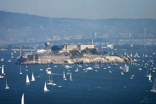 Alcatraz is a decommissioned island federal penitentiary nestled beautifully in the bay. Before it was a prison it served first as a lighthouse (the West Coast's first lighthouse), then a military outpost, and then a military prison. After this, it served as a federal prison for 29 years between 1934 and 1963. Its location was near perfect due to its isolation and the frigid waters and hazardous currents of the bay, which made escape attempts difficult to say the least. Known by its nickname "The Rock", this prison was once home to some of the most notorious inmates in U.S. history. Famous inmates included Al Capone, who served four and a half years here, and Robert Stroud — "The Birdman of Alcatraz," — who spent 17 years here. The notorious gangster and bootlegger, George "Machine Gun" Kelly, also served time at the Rock. It was claimed (by the penitentiary) that no one ever escaped from the prison alive.