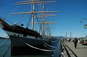 - 🌍 Hyde Street Pier (San Francisco Maritime NHP), 2905 Hyde Street (at the foot of Hyde St). 10:00 AM-5PM (last entry 4:30PM). Prior to the construction of the Golden Gate Bridge and the Bay Bridge, this historic ferry-pier was the primary automobile ferry terminal that connected San Francisco with both Marin County and the East Bay. A fleet of six historic vessels are on display on the pier. Some are available for a self-guided tour, others by docent-led tours. Accessing the pier and boarding ships requires an admission fee. If seeing the ships is your main interest, be sure to ask which ships are open before you buy your ticket as maintenance issues frequently make ships inaccessible. Tides can also prevent access to some of the ships. Among the ships you can see are the Balclutha, an 1886 steel-hulled square rigged sailing ship, the Eureka, an 1890 steam ferryboat (which also has an exhibit of antique cars on board) as of 2022 the Eureka is in accessible because a winter storm in 2020 damaged the gangway, the C.A. Thayer, an 1895 lumber schooner, and the Hercules, a 1907 steam tug (though access is limited to mid-range tides as the gangway is short and steep). 15.