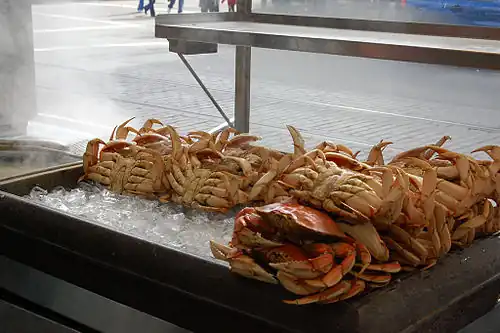 - 🌍 Chowder and crab sidewalk stands, 200 Jefferson St (at Taylor St). Get clam chowder in a bread bowl, Dungeness crab (in season November through June), fish and chips, shrimp cocktails, calamari salad, etc. from this busy outdoor marketplace. If you're getting a crab, ask for a fresh one and they'll cook it up for you on the spot. $4 and up.