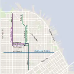 - The Powell/Mason cable car line brings you a few blocks south of the center of the district, at Taylor and Bay Sts.