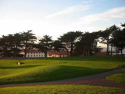 - 🌍 Officers Club, 50 Moraga Ave (at Graham St), ☏ +1-415-561-5444, events@presidiotrust.gov. Tu-Su 10AM-6PM. It was built by the Spanish with adobe walls, and was remodeled in the 1930s in the Spanish Colonial Revival-style adorned with rustic Spanish-tile gable roofs, heavy, rough timber lintels and beams, and decorative ironwork. Free.