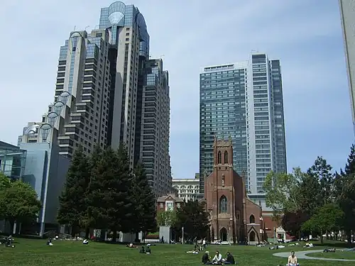 - π Yerba Buena Gardens, β +1-415-820-3550. 6AM-10PM daily. The Yerba Buena Gardens, above the Moscone Convention Center, provide a nice urban oasis. A large grassy meadow, a memorial to Martin Luther King, Jr., play places for kids, fountains and gardens make this a great place to come, play and relax. Free.