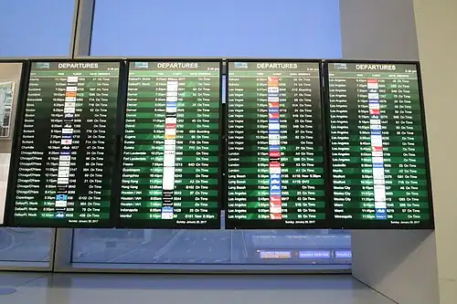 The airport adopts the centralized terminal concept, with 4 terminals (3 domestic, 1 international) with 7 concourses in a circle surrounding parking and transportation facilities. Some domestic flights depart from the international terminal, and conversely, some international flights to Canada depart from the domestic terminals.