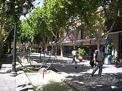 Plaza 25 de Mayo is the centre and the two blocks north and east of it on Tucumán and Rivadavia towards Plaza Aberastain are somewhat pedestrianised, pleasant, with trees. Some other streets around that are also fairly quiet, but Libertador San Martín Avenue (RP7/RP14 running east and west two blocks north of Plaza 25 de Mayo) and Santa Fe (running west one block south of Plaza 25 de Mayo) are both more busy with multiple bus lines. A ring road had reduced traffic through the centre.