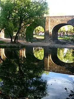 - History Bridge - Av. Benito Juárez Pte. This was a busy place for colonial era commerce because the geography of the region made it the only practical place to cross the San Juan River and gain access to the Camino Real (Royal Road). That's how it came to be called "Garganta de Tierra Dentro" (throat of the interior). The town of San Juan del Rio became a de facto transportation hub and an important customs checkpoint for the government.