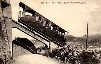 - Funicular (cable-car) (Bus #16 stops outside lower station). 10:00-21:00. will take you up and down Mount Igueldo. If you use your own transport to get up (including walking) you'll have to pay a €2.50 per person toll at the top. The top of the mountain provides a great view over the town (and access to the Mount Igueldo Amusement Park) €2.80 one way; €4.25 return..