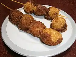 Sano is also known for its fried potatoes called imofurai. Small potatoes arranged on a skewer, dipped in batter and into bread crumbs before being deep fried. The tangy and sweet sauce that is served with it, however, is the deciding factor on its taste. This is available at many grocery stores and imo-fry shops can be found all over the city.