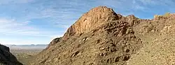 The Santa Catalina Mountains, often called simply the Catalinas, are a mountain range in the Coronado National Forest and located northeast of Tucson. Crowned by Mt. Lemmon at an elevation of 9,157 ft (2,791 m), the range is a 'sky island', which has a very different climate from that of the valley and surrounding desert. This climatic difference makes it a popular tourist destination for those in the Phoenix and Tucson areas, particularly in the summer months.