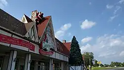 Among the local landmarks are the old church, the post office and a 10-foot statue of Santa Claus. Kringle Place, the main shopping area in Santa Claus, is a mix of Christmas-themed shops and everyday chain stores. There are models of Santa everywhere. A gated residential community, Christmas Lake Village, was established in the 1960s.