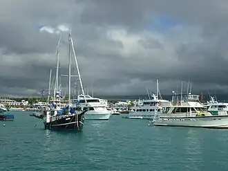 Many people arrive annually by private yacht as part of a trip around the world. Puerto Ayora and Puerto Baquerizo Moreno are the main ports of entry in the Galapagos - however most sail boats will enter at Puerto Villamil. Boating in the Galapagos is restricted. A non-Ecuadorian vessel arriving from a non-Ecuadorian port may stay up to 20 days in a single port. Arrival fees are approximately $130 plus $3 per tonne for the vessel, plus $110 per person for the Park's pass and island immigration. National Immigration and Customs are about another $50.