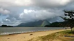 - Damai Beach. Kuching's nearest public beach. There is a small section of beach which is free to use by the public and has nice sand with hermit crabs who rush about and burrow under the sand when you approach them! The water is very warm but not particularly clear but gently sloping for safe swimming. Beware of rocks at high tide, though. Parasols and kayaks can be hired. Busy at weekends.