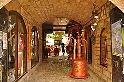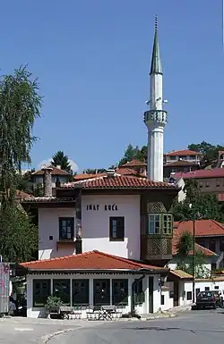 1 2 3 5 Baščaršija, entrance is on the south side of the block, from the Sarači street), ☏ +387 33 236-119. 08:00-22:15. The only preserved Ottoman Inn (han literally means roadside inn) in Sarajevo, built in 1551, under the benevolence of Gazi Husrev-Beg's endowment (vakuf). It served as a caravanserai, able to accommodate up to 300 guests, 70 horses, and offered 43 rooms where travellers could spend the night. On 29 July 1878, the inn became the scene of the protest movement against the Austro-Hungarian occupation of Bosnia, and the People's Council (Narodni Odbor) was founded here. The building was damaged or destroyed by fires numerous times and rebuilt each time, notably in 1697 and most recently in December 1957 when the entire complex was burned to the ground. Reconstruction took place from 1971 to 1974, and Persian calligraphic inscriptions from poems written by Omar Khayyám, a 12th-century Persian poet, were added as decorations. The property ownership to the inn was returned to the Gazi Husrev-Beg endowment in 1998, and houses a carpet shop and traditional restaurant, occasionally hosts exhibitions and offers business space for purposes that match the historical context and purpose of the building. Stairs on either side of the inner patio allow visitors to reach the first floor with the rooms. Free.