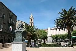 - 🌍 Place de la Libération (In the town center). Formerly Place Porta (a very welcoming place where the inhabitants meet to discuss, mainly politics). There was the guillotine there. There the men of "good birth", the Sgios, argued. At the foot of the church, at dawn, the peasants were waiting for job offers. This shaded square, very lively with its market and cafes, faces southwest/northeast. It is dominated to the north by the town hall, the former governor's palace under Genoese occupation, and by Église Sainte-Marie, a characteristic Corsican church (with its three-level bell tower with bays and surmounted by a dome). At its southern end there is an esplanade, Pasquale Paoli square where the bust of the Babbu di a patria has been enthroned since 8 December 2006.