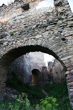 - 🌍 The peasant fortress ruins (Cetatea țărănească) (up the hill). These ruins used to be a fortress, today they are left to fall apart. However there is still left a lot. The place is deserted and you can climb on the walls, it is however recommended you respect the place and don't contribute to its destruction.