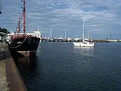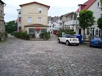 - Old part of the town. behind the north-eastern end of the harbour. The town is on cliffs above the harbour, there are steps down near the shops, or it can be approached through the old town. Walk past the shops (the sea should be on your right) and fork right downhill. Ferries to Sweden used to leave from the harbour here, but now use the modern port near Dubnitz known as "Fährhafen Sassnitz".